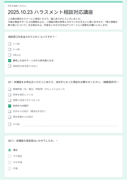 ハラスメント相談対応講座感想 (旧ハラスメント相談員スキルアップ講座)