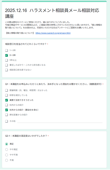 - 大変実践的な内容で、ハラスメントメール相談に対する取り組み方の意識が変わりました。